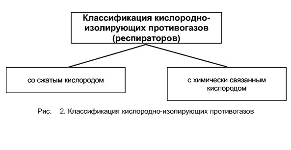 Классификация противогазов (респираторов) Противогазы изолирующие кислородные (респираторы) классифицируются по способу хранения и подачи кислорода (рис. 2) на: - со сжатым кислородом; - с химически связанным кислородом.