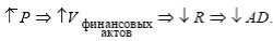 4. Повышение общего уровня цен (Р) вызывает снижение реальной ценности финансовых активов населения (кассовых остатков) (U), что в свою очередь делает людей менее богатыми (R), а их спрос на рынке, естественно, снижается (AD); 5. Эффект импортных закупок (товаров)