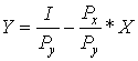 При движении из точки А в точку В увеличивается количество товара Х и снижается Y, т. е. происходит замещение одного товара другим. В товарном мире возможны разные нормы замещения одного товара другим. Кривые безразличия лишь показывают возможность замены одного товара другим, но не определяют, какой набор товаров потребитель считает для себя наиболее выгодным. Эту информацию дает бюджетное ограничение, показывающее, какие потребительские наборы можно приобрести на данную сумму денег. Выбор набора товаров зависит от цен на товары и бюджета потребителя. Пусть свой бюджет (I) потребитель тратит на покупку двух товаров: товара Х по цене Рх, товара Y по цене Ру, тогда уравнение бюджетной линии будет иметь вид