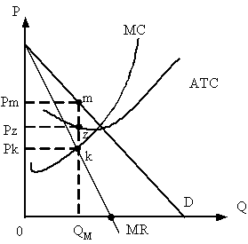 Рис. 14.1. Максимизация прибыли фирмой-монополистом То есть чем более неэластичен спрос на продукцию монополиста, тем больше его монопольная власть, тем больше его прибыль. Так как цена монополиста Pm> Pz (себестоимость QM), величину прибыли характеризует прямоугольник PmmzPz.