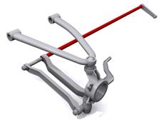 а) б) Рис.2 – Схеми двоважільної (а) і багато важільної (б) підвісок Торсіонна підвіска (рис. 3) використовується на багатьох сучасних позашляховиках цього типу. По суті підвіска на двох поперечних важелях, але замість пружини в ній використовується торсіон - пружний металевий стрижень, що працює на скручування. Він відіграє ту саму роль, що і ресори, пружини або гумові блоки. Але на відміну від них він працює тільки на скручування (франц. torsion – означає скручування).). У 1935 році торсіонна підвіска була використана на Citroen Traction Avant.