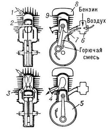 Рис.4 – Схема роботи двотактного двигуна