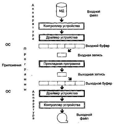 В предыдущей лекции мы рассмотрели состав вычислительной системы. Типичная траектория данных при обработке в ЭВМ условно показана на следующей схеме.