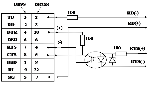Логической единице (состоянию «включено») соответствует протекание тока 20 мА, а логическому нулю — отсутствие тока. Такое представление сигналов для описанного формата асинхронной посылки позволяет обнаружить обрыв линии, так как приемник заметит отсутствие стоп-бита по наличию постоянного логического нуля (обрыв линии действует как постоянный логический нуль). Токовая петля обычно предполагает гальваническую развязку входных цепей приемника от схемы устройства. При этом источником тока в петле является передатчик, но возможно и питание от приемника. Токовая петля с гальванической развязкой позволяет передавать сигналы на расстояния до нескольких километров. Расстояние определяется сопротивлением пары проводов и уровнем помех. Поскольку интерфейс требует пары проводов для каждого сигнала, обычно используют только два сигнала интерфейса. В случае двунаправленного обмена применяются только сигналы передаваемых и принимаемых данных, а для управления потоком используется программный метод XON/XOFF. Если двунаправленный обмен не требуется, используют одну линию данных, а для управления потоком обратная линия задействуется для сигнала CTS (аппаратный протокол) или встречной линии данных (программный протокол).