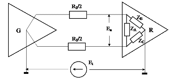 Для указанной эквивалентной схемы степень асимметрии определяется отношением интенсивности помехи общего вида Ei к напряжению помехи Еn, наведенной между проводниками кабеля на входе эквивалентной схемы приемника:
