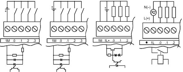 Во входных каскадах дискретных входов центральных процессоров и модулей ввода дискретных сигналов применяются транзисторные оптроны с встречно-параллельным включением светодиодов. Это обеспечивает гальваническое разделение внешних и внутренних цепей модуля, а также позволяет использовать для питания напряжение любой полярности. Допускается горизонтальная и вертикальная установка контроллеров. В последнем случае диапазон рабочих температур должен быть снижен до 45°C (рисунок 4.3). Дискретные входы Транзисторные выходы Релейные выходы