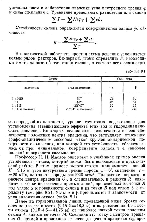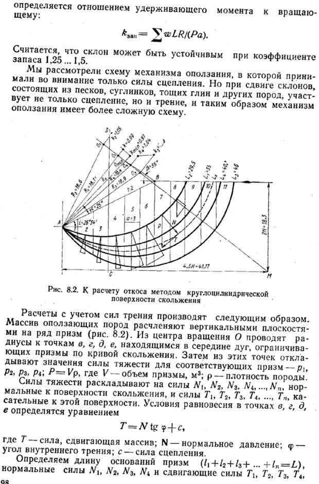 Расчет устойчивости грунтовых откосов по круглоцилиндрическим поверхностям скольжения