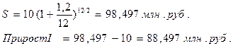 где d- непрерывная ставка, Задача 7. На сумму 10 млн руб. начислить проценты по непрерывной ставке d=12% за 5 лет. Решение: