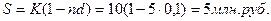 Итак, векселедержателю выгоднее дисконтирование по сложной учетной ставке, т.к. в день учета он получит большую сумму. Задача 9. Капитал 20 млн. руб. вложен на 4 года под 4% годовых. Найти доход от вложения денег при 1) декурсивном, 2) антисипативном способах расчета. Какое вложение выгоднее кредитору? Решение: Т.к. срок вложения денег больше 1 года, расчет сделаем по сложным процентам.