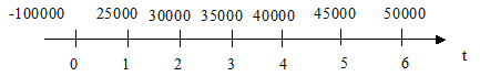 Решение: Изобразим ежегодные поступления от инвестиций на временной оси.