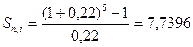 Долг суммой 100 тыс. руб. выдан на 5 лет под ставку g= 20%. Для его погашения создается фонд. На инвестируемые средства начисляются проценты по ставке i = 22%. Необходимо найти размеры срочных уплат. Взносы производятся в конце каждого года равными суммами.