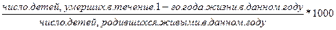 Для расчета коэффициента младенческой смертности (‰) применяются несколько методов. Самый простой из них:
