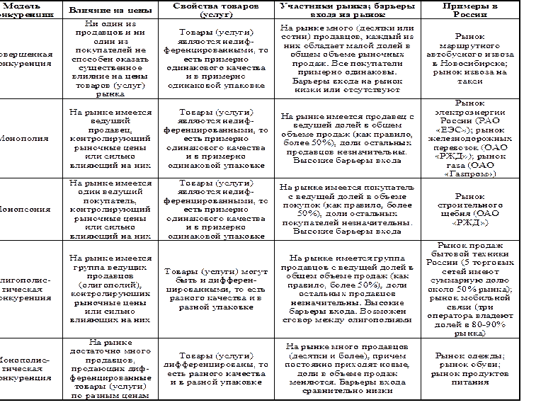 Вопрос 2. Классификация рынков по видам конкуренции.