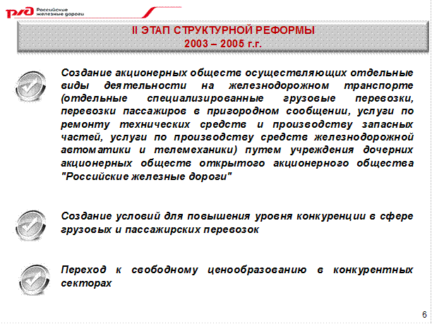 Основные цели: ¨ Представить объективную необходимость ведения маркетинговой деятельности в железнодорожных компаниях. ¨ Раскрыть сущность реформирования отрасли и этапы структурной реформы. ¨ Рассмотреть модели будущего железнодорожного рынка. План 1. Роль железнодорожного транспорта в экономике страны. 2. Специфика российских железных дорог при формировании модели будущего железнодорожного рынка. 3. Этапы реформирования железнодорожного транспорта. 4. Модернизация и инновации – «Меняемся для Вас!». 5. Плюсы и минусы конкурентных моделей в грузовых железнодорожных перевозках.