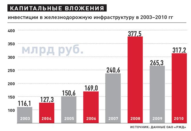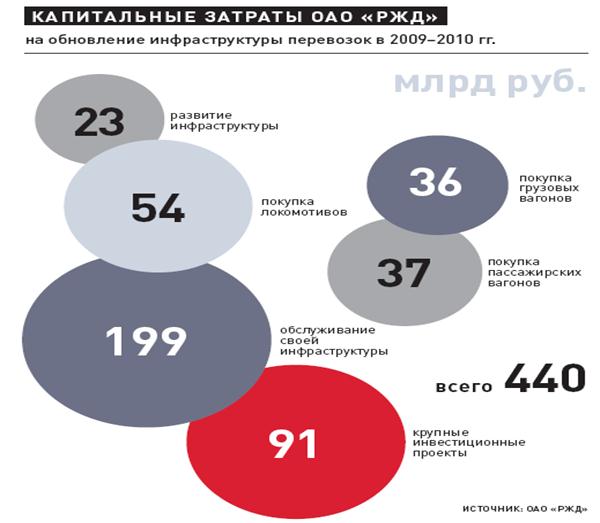 • 2,9 трлн.рублей - капитальные вложения в ценах 2011 г. (Приоритетные направления- развитие и обновление инфраструктуры, приобретение и модернизация подвижного состава) • 75, 6 млрд.рублей - вложения в проекты российского высокоскоростного движения • 386,1 млрд.рублей – обновление подвижного состава • 60, 0 млрд.рублей – приобретение новых электричек • 20,4 млрд.рублей – модернизация вокзалов • 152,6 млрд.рублей – реконструкция искусственных сооружений • 221,2 млрд.рублей – подготовка инфраструктуры в Сочи • 90,5 млрд.рублей – развитие направлений Кузбасс-морские порты • 5,75 млрд.рублей – инновационное развитие в 2010 году