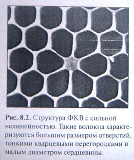 Рис Структура ФКВ с сильной нелинейностью. Волокно содержит большие размеры отверстий, тонкие кварцевые перегородки и малый диаметр сердцевины.
