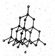 По природе частиц в узлах кристаллической решетки и химических связях между ними можно все кристаллы разделить на молекулярные, атомно-ковалентные, ионные и металлические. Кроме того, существуют кристаллы со смешанными химическими связями. Молекулярные кристаллы (Аr, О2, N2, СО2, Н2О). В узлах решеток находятся молекулы, между которыми действуют вандерваальсовы и водородные силы, имеющие невысокую энергию. Это и определяет свойства молекулярных кристаллов: невысокую энергию связей, низкую температуру плавления, по механическим свойствам они мягкие и являются диэлектриками. Вещества с молекулами сферической формы имеют структуру плотной упаковки. Кристаллы с полярными молекулами в узлах имеют более высокую прочность и температуру плавления, чем кристаллы с неполярными молекулами в узлах. Значительное упрочнение кристаллов обусловливают водородные связи, например, кристаллов льда. Из-за направленности водородных связей координационное число и плотность упаковки кристаллов снижаются (табл. 3). Например, координационное число воды в кристаллах льда равно четырем и, соответственно, плотность льда относительно невысока (меньше плотности жидкой воды). Атомно-ковалентные кристаллы (C, Ge, Si, SiO2, SiC). В узлах кристаллов располагаются атомы, образующие друг с другом прочные ковалентные связи. Это обусловливает высокую энергию решетки, температуру плавления, они очень твердые, могут быть и диэлектриками и полупроводниками. Из-за направленности ковалентных связей координационные числа и плотность упаковки в атомно-ковалентных кристаллах обычно невелики. Так, например, в кристалле алмаза углерод имеет sp3-гибридизацию и, соответственно, координационное число 4 (рис. 4). Ионные кристаллы (KCl, CaF2, Na2CO3). Структурными единицами кристаллов этого типа являются положительно и отрицательно заряженные ионы, между которыми происходит электростатическое взаимодействие, характеризуемое достаточно высокой энергией. Этим объясняются свойства веществ с ионными кристаллами: высокая температура плавления, такие вещества твердые и хрупкие, являются диэлектриками. Из-за ненаправленности и ненасыщенности связей и сферической формы частиц координационные числа у ионов могут быть высокими, как, например, в решетках NаС1 (рис. 5) и КС1. У соединений со сложными ионами форма кристаллической решетки искажается.