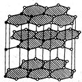 При образовании кристаллов графита у углерода происходит sp2-гибридизация с образованием двумерных (плоских) структур, у которых валентные углы связей равны 120° (рис. 6). Длина связи С-С в плоскости равна 0,142 нм. Четвертый валентный электрон (p-электрон) каждого атома вступает в p-связь между соседними атомами. Эти p-электроны очень подвижны и обеспечивают электронную проводимость. Между плоскими слоями графита возникает слабое вандерваальсово взаимодействие, длина связи составляет 0,35 нм. Прочные ковалентные связи (716 кДж/моль) обеспечивают графиту высокую температуру плавления и химическую стойкость, наличие подвижных электронов p-связи – электрическую проводимость и теплопроводность. Из-за слабых вандерваальсовых сил (энергия связи 17 кДж/молъ) между слоями графит очень мягок, легко расслаивается, что позволяет использовать его как смазку и как наполнитель стержней карандашей. Вследствие большого расстояния между плоскостями и низкой энергии связи между плоскостями графита могут внедряться атомы других элементов, например фтор или щелочные металлы, ионы или молекулы, например IС1, FеС13. В результате получаются соединения графита, например С6Li, С8К, СFx, СxIСly. Такие соединения называются интеркалятами или слоистыми соединениями. Процесс вхождения молекул, ионов или атомов в решетку называется интеркалированием: C + xF = CFx Интеркалирование характерно не только для графита, но и для многих других простых веществ и соединений, например ТiS2, V3О5, МпО2. При включении атомов, ионов или молекул в графит изменяются межплоскостные расстояния кристалла графита и его свойства. Например, электрическая проводимость некоторых интеркалятов графита приближается к проводимости металлов, а иногда и ее превосходит. Интеркиляты уже находят применение для изготовления проводов, соединения графита со фтором и литием. Используются в качестве электродов новых энергоёмких химических источников тока. Слоистые соединения являются разновидностью особого класса соединений, называемых клатратами или соединениями включения, которые образованы включением молекул («гостей») в полости кристаллического каркаса, состоящего из частиц другого вида («хозяев»), Кроме слоистых соединений (интеркалятов), к клатратам относятся газовые гидраты, клатраты мочевины и др. В газовых гидратах в полостях кристаллов льда могут находиться молекулы, размеры которых лежат в пределах 0,38 ÷ 0,92 нм (N2, О2, СгН4, С02, Сl2, Аг, Хе, Н2S, СH4, Вг2 иди др.). Например, известны клатраты примерного состава СН4.6Н2О, в которых на 46 молекул воды имеется 8 полостей, занятых молекулами метана. По теории Л. Полинга образование газовых гидратов в жидкости мозга является причиной анестезии, например ксеноном. Клатраты существуют в природе. Например, на значительной глубине в земле в районах вечной мерзлоты существуют твердые клатраты метана. Это источник ценного сырья, с другой стороны - это пополнение парниковых газов за счет метана при таянии клатратов. Оценки показывают, что запасы углеводородного сырья в газовых гидратах заметно превышают запасы топлива на Земле во всех других видах. Клатраты используются для разделения газов, особенно благородных,опреснения морской воды. При подаче пропана под давлением образуются твёрдые газовые клатраты, после их отделения и нагревания получают чистую воду и 