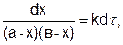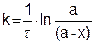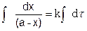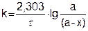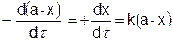 Если обозначить через а – начальную концентрацию вещества до реакции, а через (а – х) концентрацию вещества в момент времени t от начала реакции и х – количество прореагировавшего вещества, то