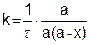 Откуда 1/(а – х) = kt + const. (5.18) При t = 0, x = 0 const = 1/а (5.19) Подставив уравнения (5.19) в (5.18), получим