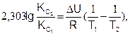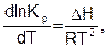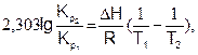 Под термином «химическое сродство» понимают способность веществ вступать в химическое взаимодействие друг с другом. У различных веществ оно зависит от природы реагирующих веществ, концентрации или давления (для газов) и температуры. За меру химического сродства приняли изменение термодинамических потенциалов: изменение энергии Гиббса (DG) и изменение энергии Гельмгольца (DF). При постоянной температуре химическое сродство считают по уравнениям Вант-Гоффа, которые называются уравнением изотермы химической реакции. Для газовых смесей она имеет вид: DG = RT(ln a для газовых смесей и растворов: DF = RT(ln где DG и DF – изменение энергии Гиббса и энергии Гельмгольца, Дж/моль; PA, PB, PC, PD и СА, СВ, СС, СD – неравновесные давления и концентрации участников реакции, Па и моль/дм3, соответственно; КР и КС – константы равновесия, содержащие равновесные давления и концентрации. Уравнения (6.16) и (6.17) применяют для идеальных газовых смесей или разбавленных растворов. При стандартных условиях эти уравнения имеют вид: DG0 = 2,303RT(Dnlg101325 – lgКР) (6.18) DF0 = -2,303RTlgКС (6.19) Уравнения (6.17) – (6.19) позволяют определить, каким должны быть температура и состав исходной реакционной смеси, чтобы реакция протекала в нужном направлении и требуемой степени. Как отмечалось в теме 4, если DF или DG < 0, то процесс идет самопроизвольно в прямом направлении; если DF или DG > 0, то процесс идет самопроизвольно в обратном направлении; если DF или DG = 0, то это состояние химического равновесия. Общеизвестно, что константа равновесия зависит как от природы реагирующих веществ, так и температуры. Зависимость константы равновесия от температуры можно вывести, используя первый и второй законы термодинамики и уравнения (6.18) и (6.19). Получим уравнения изобары (6.20) и изохоры (6.21) Вант-Гоффа (1884) в дифференциальном виде: