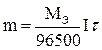 Для выделения 1 грамма эквивалента вещества требуется пропустить через электролит одно и тоже количество электричества, равное приблизительно 96500 Кл (число Фарадея). Следовательно: