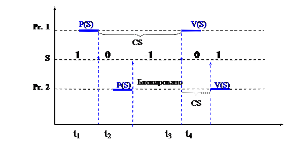 Рис.5. Временная диаграмма для двоичного семафора (S)