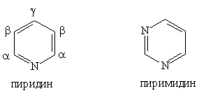 Пиримидин C4H4N2 — шестичленный гетероцикл с двумя атомами азота. Его можно рассматривать как аналог бензола, в котором две группы СН заменены на атомы азота: