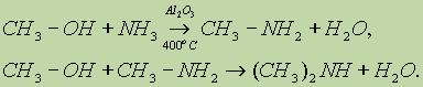 Для восстановления можно использовать цинк или железо в кислой среде или алюминий в щелочной среде. 3. Низшие амины получают, пропуская смесь спирта и аммиака над поверхностью катализатора: