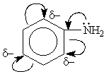 что приводит к усилению основных свойств. Напротив, фенильный радикал C6H5— проявляет отрицательный мезомерный (-М) эффект и уменьшает электронную плотность на атоме азота: