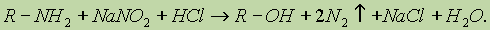 3. Реакции с азотистой кислотой. а) Первичные алифатические амины при действии азотистой кислоты превращаются в спирты:
