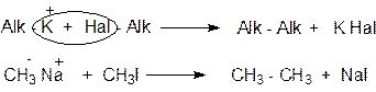 Для калия её не удаётся удержать на первой стадии: (реакция Вюрца – метод получения алканов)