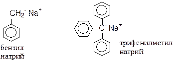 б) соединения с олефиновыми связями, сопряжёнными с ароматическим ядром: Атом натрия отдаёт свой электрон именно тем атомам углерода, которым легче рассредоточить электронную плотность по ароматическому ядру или по системе сопряженных связей. Простые олефины не присоединяют щелочных металлов. в) алифатические 1,3-диеновые углеводороды при действии щелочных металлов полимеризуются
