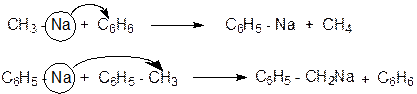Вторая реакция показывает, что водород метильной группы более активен, нежели водород бензольного ядра. Эта реакция позволила чисто химически оценить степень подвижности водорода в различных соединениях. Подвижность водорода: СН º СН > СН3 – С6Н5 > С6Н6