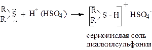 Диалкилсульфиды подобно алифатическим простым эфирам являются слабыми основаниями и с концентрированной серной кислотой образуют соли