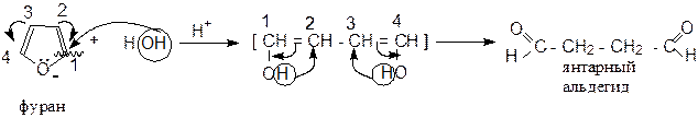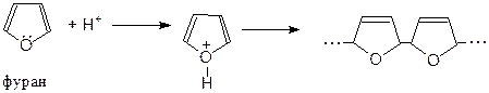 1.2. Окисление: а) фуран На воздухе автоокисляется и полимеризуется. Под действием концентрированных кислот осмоляется, происходит протонизация фурана по кислороду, и далее полимеризация: