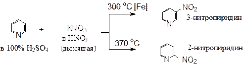 Пониженная электронная плотность кольца облегчает реакции нуклеофильного замещения (a- и g- положения).