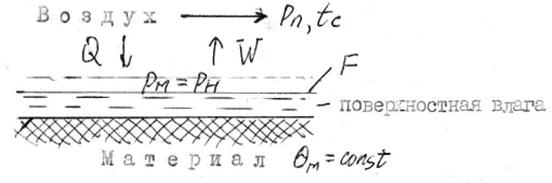 Рис. 181. Схема испарения влаги в первом периоде сушки.