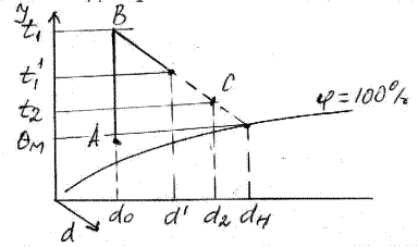 Рис. 184. К определению средней разности влагосодержаний воздуха.
