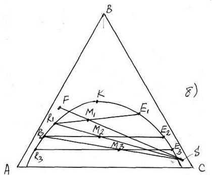 Точка Е' определяет состав экстракта после удаления растворителя. Для более полного извлечения компонента из исходной смеси применяют многократную экстракцию.
