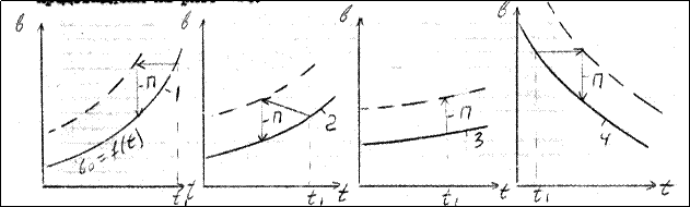 Статика включает растворимость чистого вещества, равновесные формы кристаллов и их состав. Применяется для определения начальной и конечной концентраций вещества в растворе (материальный баланс), его температуры (тепловой баланс), движущей силы процесса (кинетика). Статику обычно представляют в виде кривой насыщения Форма кривой насыщения определяет наиболее целесообразный метод кристаллизации. Различают четыре формы кривой насыщения, которые представлены на рис.304.