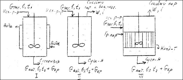 I – охлаждением, II – вакуум-кристаллизатор, III – кристаллизатор выпаркой.