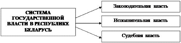 Республика Беларусь - унитарное демократическое социальное правовое государство. Человек, его права, свободы и гарантии их реализации являются высшей ценностью и целью общества и государства. Единственным источником государственной власти и носителем суверенитета в Республике Беларусь является народ. Государственная власть в Республике Беларусь осуществляется на основе разделения ее на законодательную, исполнительную и судебную. Государственные органы в пределах своих полномочий самостоятельны: они взаимодействуют между собой, сдерживают и уравновешивают друг друга. Собственность может быть государственной и частной. Религии и вероисповедания равны перед законом. Государственными языками в Республике Беларусь являются белорусский и русский языки Столица Республики Беларусь - город Минск.