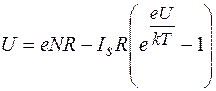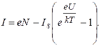 В этом соотношении U - уменьшенная контактная разность потенциалов p-n перехода, k-постоянная Больцмана, T-температура, Is-ток насыщения. Величина тока насыщения зависит от характеристик перехода и свойств p и n областей полупроводника. При постоянной интенсивности света стационарное состояние установится при таком U, при котором ток утечки будет равен фототоку. Условие стационарности принимает следующий вид: