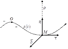 С траекторией точки можно связать естественный координатный базис: единичные векторы касательной — , главной нормали —и бинормали к траектории . Здесь — радиус кривизны траектории.