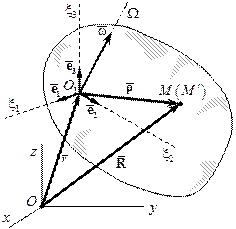 Механические явления по–разному фиксируются в различных системах отсчёта. Наблюдатели, связанные с разными системами координат, по–разному воспринимают одно и то же объективное механическое явление. Главной задачей кинематики составного движения является установление связи между кинематическими характеристиками, полученными в различных системах отсчёта. Одна из этих систем условно называется неподвижной системой. Вторая — подвижной системой отсчета (рис.1.8). Движение относительно условно неподвижной системы координат