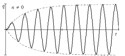 Рис. 3. 16 Резонансные колебания при отсутствии сопротивления. Уравнение движения примет вид: