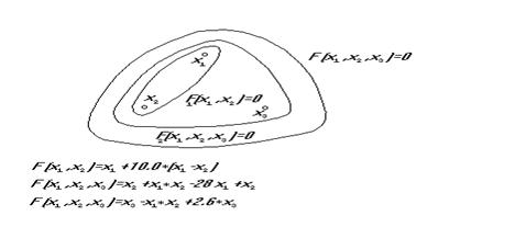 Гиперграф является вариантом симплециального комплекса или симплециальной схемы. В ряде работ [75], вводится понятие ориентированного гиперграфа. При этом множество E - определяется как множество ориентированных ребер. Примеры гиперграфов приведены на рис. 1.5 и рис. 1.6. Из диаграмм видно, что гиперграф является способом группирования зависимых переменных, без указания причинно-следственных отношений между ними. При этом способе внутреннего представления модели в ЭВМ, также возникают проблемы при внешнем представлении Скорее можно предлагать автоматическое построение гиперграфа по введенной системе уравнений.