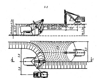 Производство работ в зимних условиях. 2. Предохранение грунта от промерзания 4. Разработка грунта в мерзлом состоянии с предварительным рыхлением 6. Контроль качества земляных работ Значительная часть территории России расположена в зонах с продолжительной и суровой зимой. Однако строительство осуществляется круглогодично, в этой связи около 15% общего объема земляных работ приходится выполнять в зимних условиях и при мерзлом состоянии грунта. Особенность разработки грунта в "мерзлом состоянии заключается в том, что при замерзании грунта механическая прочность его возрастает, а разработка затрудняется. Зимой значительно возрастает трудоемкость разработки грунта (ручных работ в 4...7 раз, механизированных в 3...5 раз), ограничивается применение некоторых механизмов - экскаваторов, бульдозеров, скреперов, грейдеров, в то же время выемки зимой можно выполнять без откосов. Вода, с которой много неприятностей в теплое время года, в замерзшем состоянии становится союзником строителей. Иногда отпадает необходимость в шпунтовых ограждениях, практически всегда в водоотливе. В зависимости от конкретных местных условий используют следующие методы разработки грунта: ■ предохранение грунта от промерзания с последующей разработкой обычными методами; ■ оттаивание грунта с разработкой его в талом состоянии; ■ разработка грунта в мерзлом состоянии с предварительным рыхлением; ■ непосредственная разработка мерзлого грунта. 2. Предохранение грунта от промерзания Этот метод основан на искусственном создании на поверхности участка, намеченного к разработке в зимнее время, термоизоляционного покрова с разработкой грунта в талом состоянии. Предохранение проводится до наступления устойчивых отрицательных температур, с заблаговременным отводом с утепляемого участка поверхностных вод. Применяют следующие способы устройства термоизоляционного покрытия: предварительное рыхление грунта, вспахивание и боронование грунта, перекрестное рыхление, укрытие поверхности грунта утеплителями и др. Предварительное рыхление грунта, а также вспахивание и боронование осуществляется накануне наступления зимнего периода на участке, предназначенном для разработки в зимних условиях. При рыхлении поверхности грунта верхний слой приобретает рыхлую струк Глубинное рыхление производят экскаваторами на глубину 1,3... 1,5 м путем перекидки разрабатываемого грунта на участке, где в последующем будет располагаться земляное сооружение. Перекрестное рыхление поверхности на глубину 30...40 см, второй слой которого располагается под углом 60...90°, а каждая последующая проходка выполняется с нахлесткой на 20 см. Такая обработка, включая снежный покров, отодвигает начало замерзания грунта на 2,5...3,5 мес, резко снижается общая глубина промерзания. Предварительная обработка поверхности грунта механическим рыхлением особенно эффективна при утеплении этих участков земли. Укрытие поверхности грунта утеплителями. Для этого используют дешевые местные материалы - древесные листья, сухой мох, торфяная мелочь, соломенные маты, стружки, опилки, снег. Наиболее простой способ - укладка этих утеплителей толщиной слоя 20...40 см непосредственно по грунту. Такое поверхностное утепление применяют в основном для небольших по площади выемок. Укрытие с воздушной прослойкой. Более 