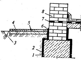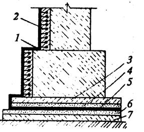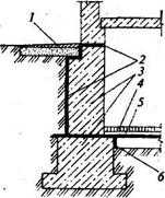 Специфика гидроизоляционных работ в зимних условиях Сборная (облицовочная) гидроизоляция Асфальтовая гидроизоляция 1. Виды и способы устройства гидроизоляции Кирпич, бетон и другие строительные материалы поглощают и удерживают воду в порах. Благодаря капиллярному подсосу, вода в конструкциях может подниматься на значительную высоту. Насыщенные влагой материалы теряют прочность и другие важные эксплуатационные качества, а наличие во влаге солей приводит к разрушению этих материалов и конструкций. Работы по предохранению конструкций от проникновения в них влаги называют гидроизоляционными, а слой водоустойчивых материалов на ограждаемой поверхности — гидроизоляцией. По месту расположения в пространстве гидроизоляция может быть подземной, подводной и наземной, относительно изолируемого здания — наружной или внутренней. По назначению гидроизоляцию подразделяют на герметизирующую, теплогидроизоляционную, антикоррозионную и антифильтрационную. Гидроизоляцию выполняют для защиты подземных частей зданий и сооружений от проникновения грунтовых вод и предотвращения капиллярного подсоса влаги (рис. 19.1), создания непроницаемости хранилищ различных жидкостей от воздействия агрессивных вод.